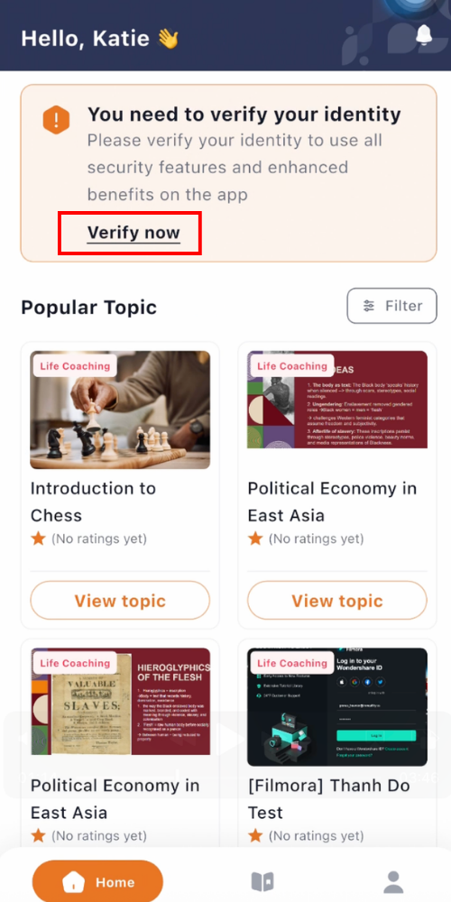 On the Home or Account page, under the section “You need to verify your identity”, select “Verify Now”.