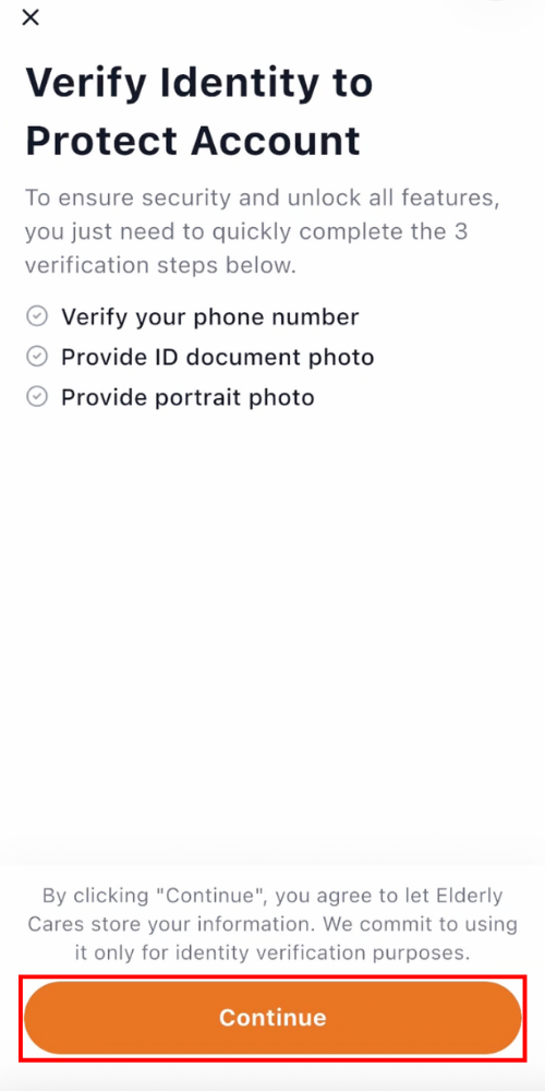 On the “Verify Identity to Protect Account” screen, select “Continue”