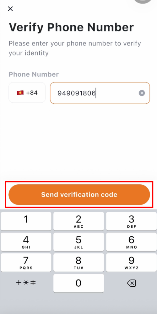 Enter your phone number. Tap “Send verification code”.