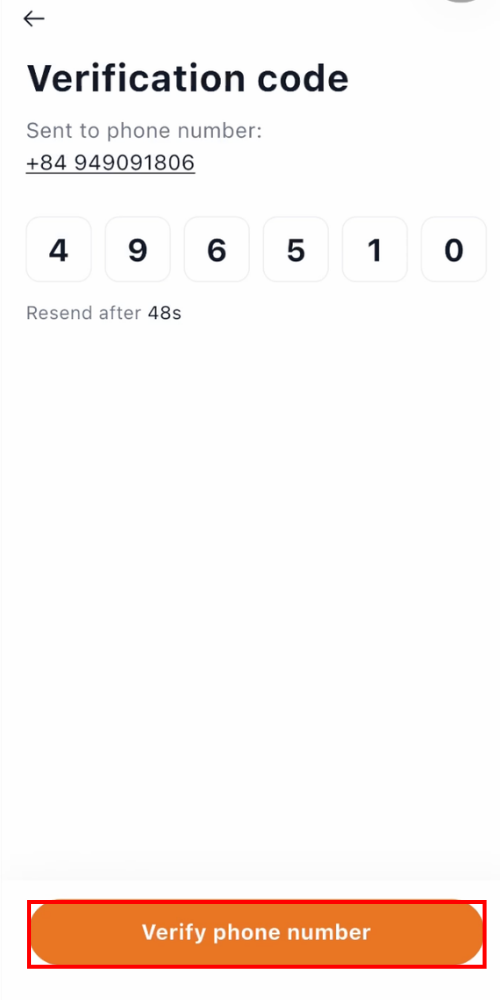 Enter Your OTP Code. Enter the 6-digit verification code into the boxes provided and select “Verify phone number”.