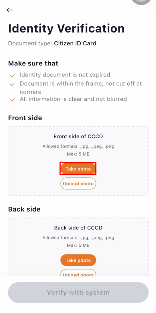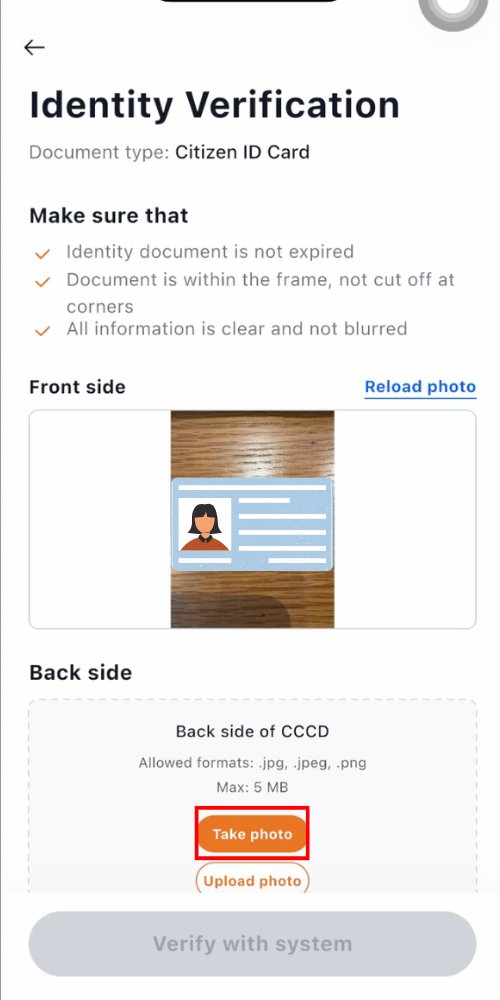 • “Take Photo” – capture your ID document immediately