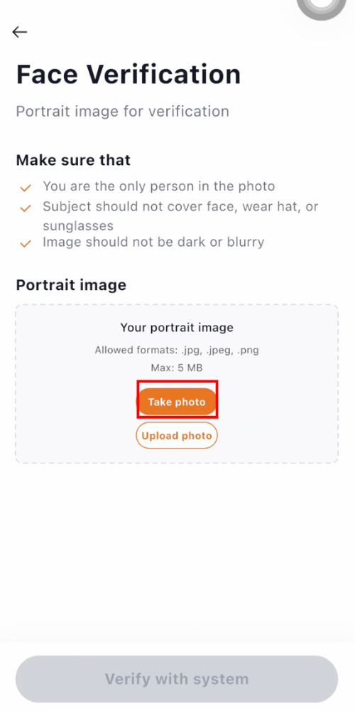 You’ll be prompted to verify your identity with a portrait photo.