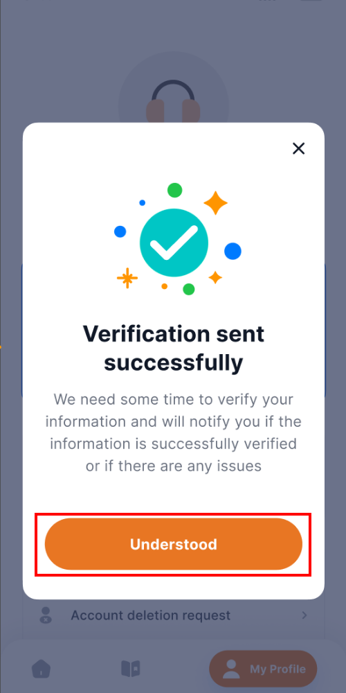 Once all information is submitted successfully, the “Verification Submitted Successfully” screen will appear.