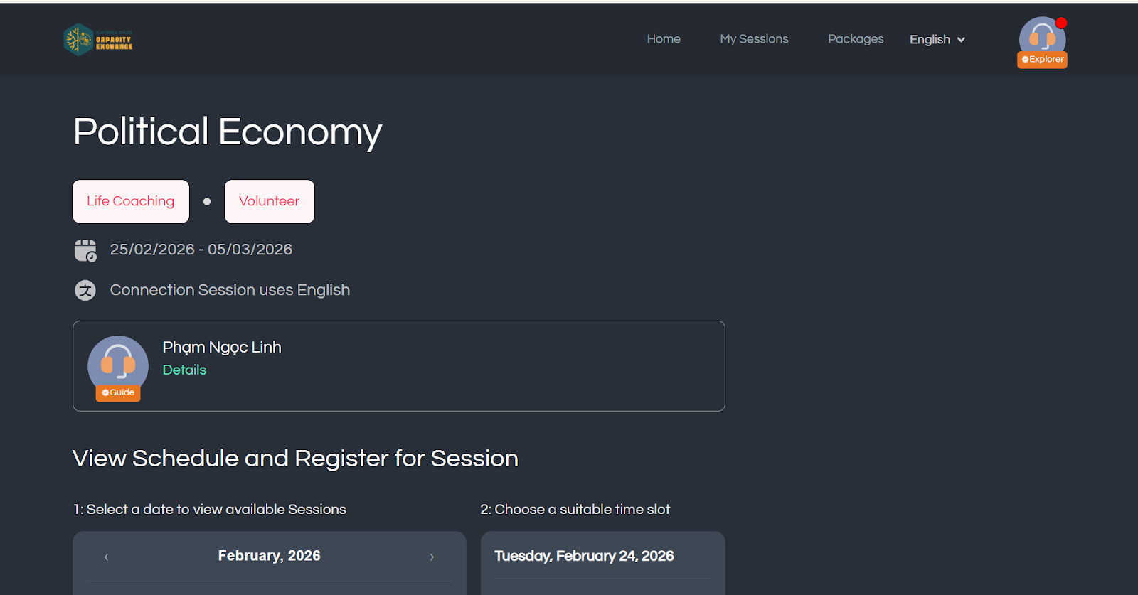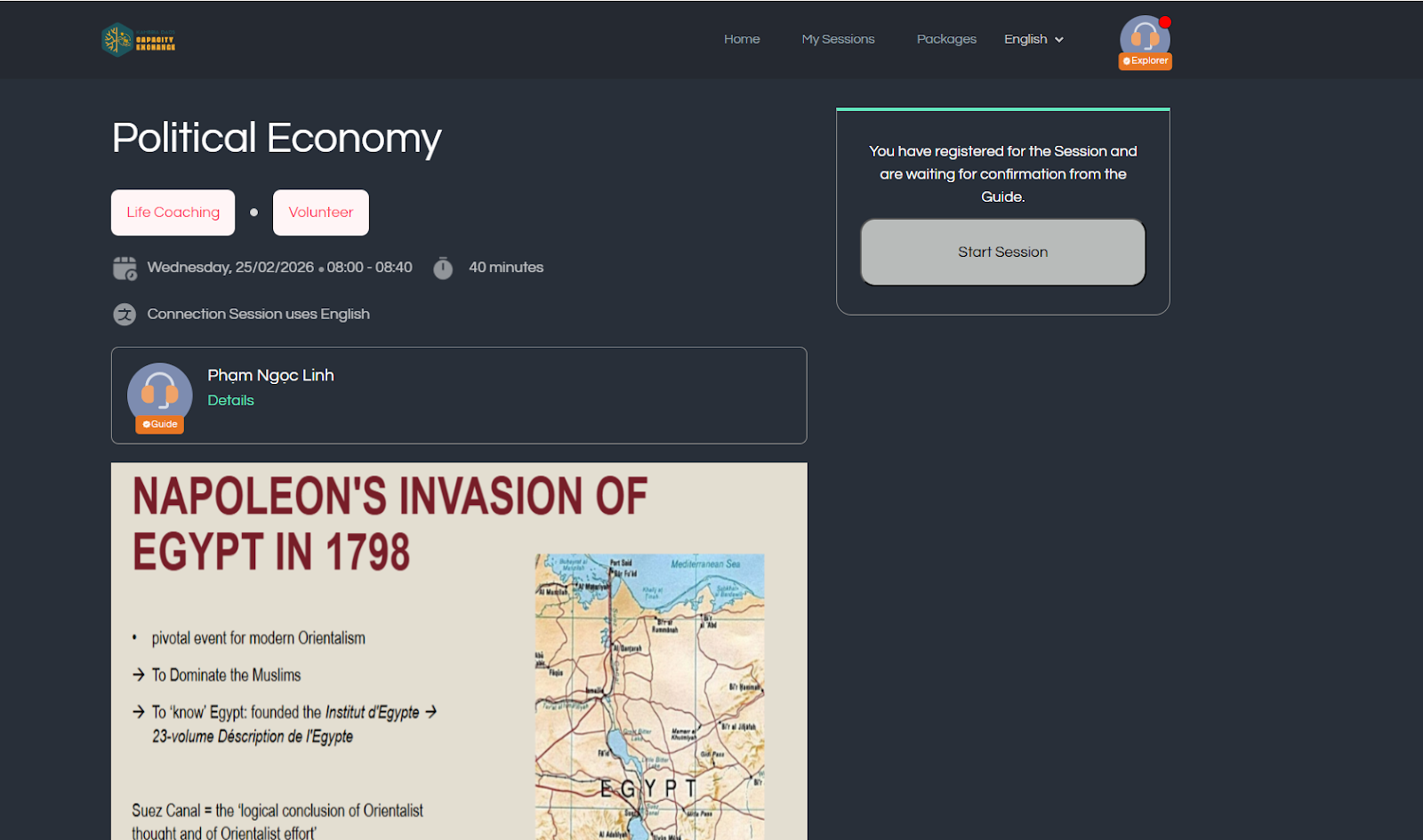 When the Guide confirmed their agreement, it means that Explorer has successfully registered for the Session. Additionally, Explorer will receive a notification through the CED mobile app and the registered email.