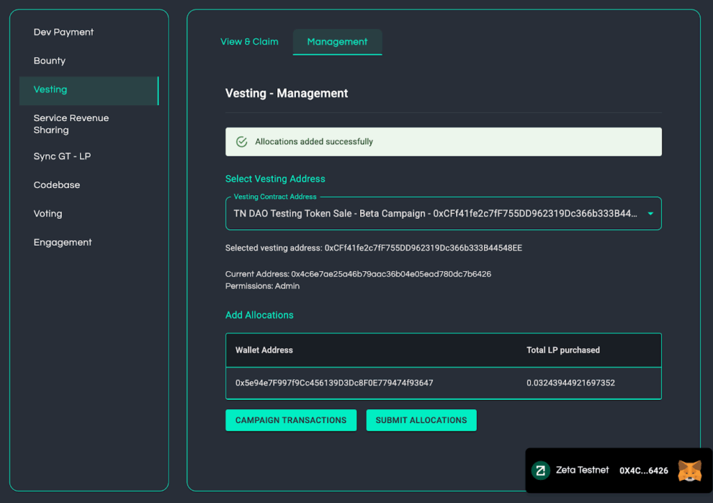 Once allocations are added, the vesting contract independently manages all future claims.