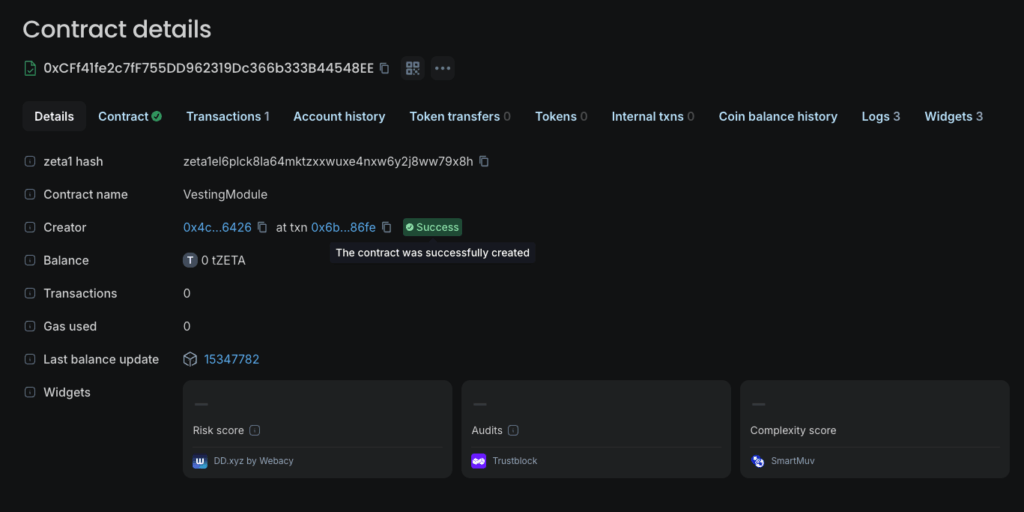 In many cases, vesting contracts reuse verified contract logic, allowing explorers to automatically recognize and verify the source code.
