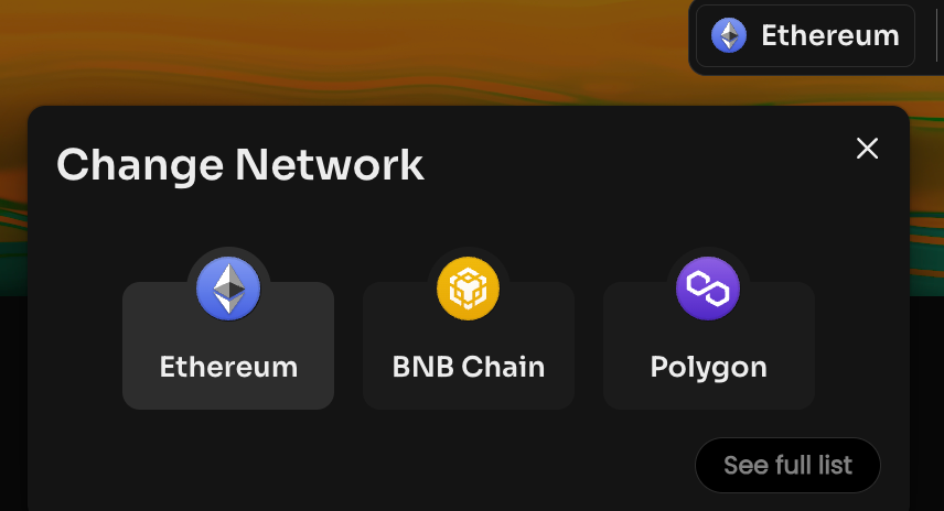 • Make sure you are connected to the correct network (Polygon). If not, change network by clicking on the Network name and select Polygon.
