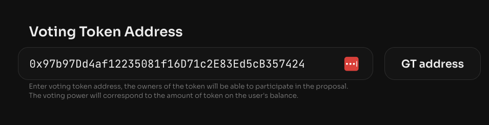 • Click “GT Address” to auto fill-in (using DAO GT Token to vote)
