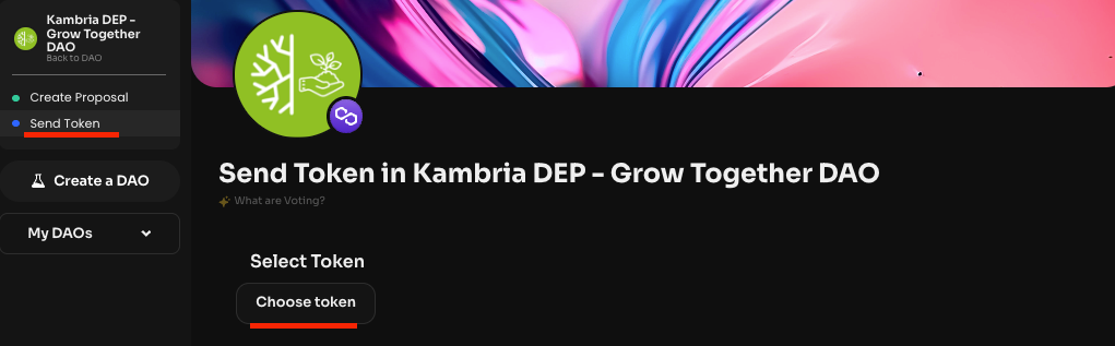 4. Send Token voting is created with 1 member signed (yourself) and 3-day voting period begins immediately: