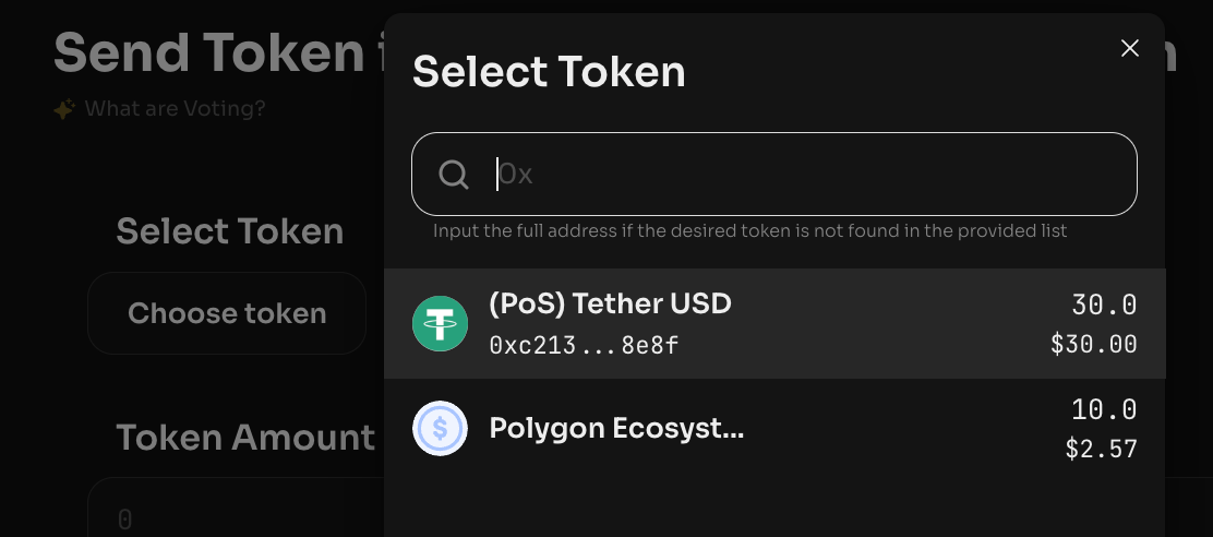 2. Choose payment token “(PoS) Tether USD” ie. USDT: