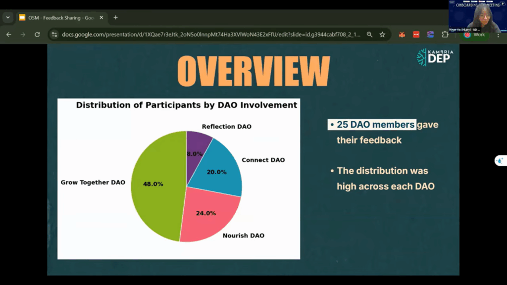 Feedback from 25 DAO Members, representing all DAOs within DEP, reflected high satisfaction with onboarding clarity, helpful materials, and overall support. Members valued fairness, transparency, and meaningful opportunities to contribute, laying a foundation for democratic and collaborative execution.