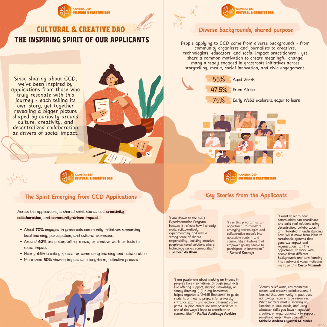 Today, we begin by sharing the inspiring energy emerging from applicants to the Cultural & Creative DAO (CCD).