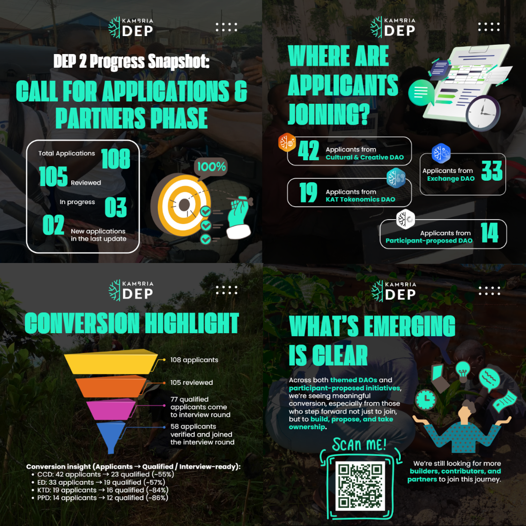 • KAT Tokenomics DAO (KTD): 19 applicants → 16 qualified (~84%)