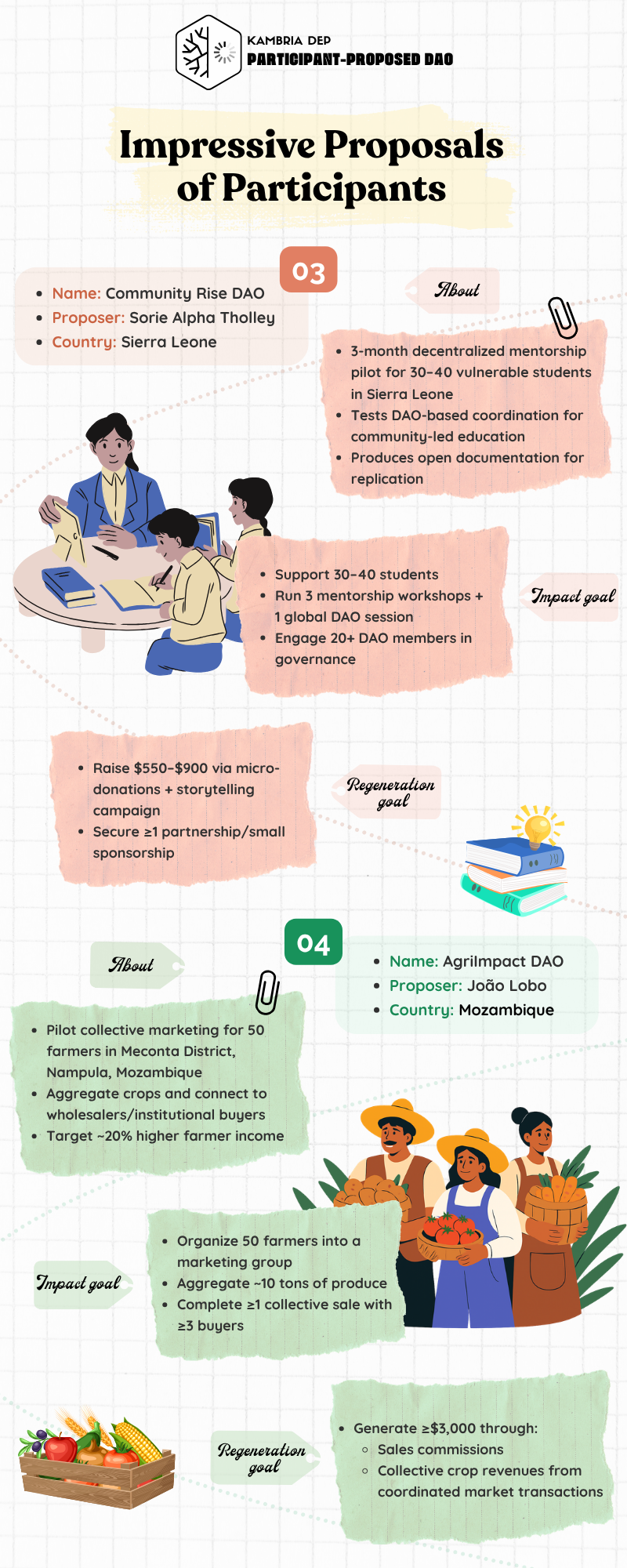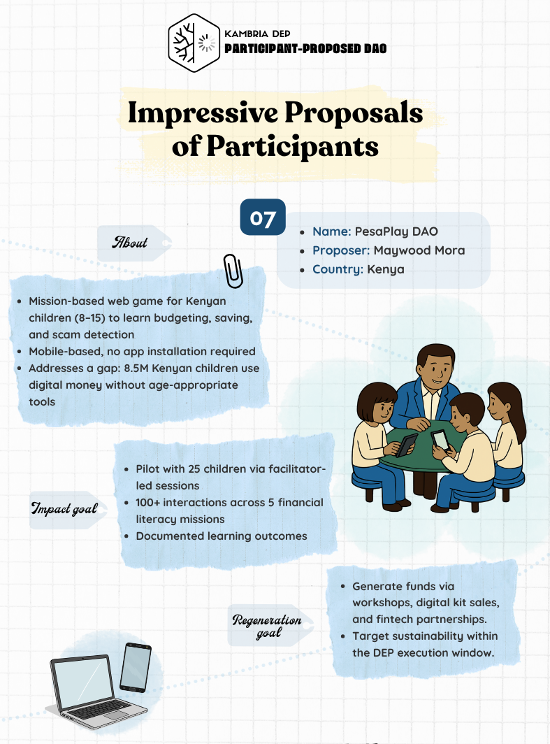 Runs a 3-month decentralized mentorship pilot supporting 30โ€“40 vulnerable students in Sierra Leone while experimenting with DAO-based community governance for education.