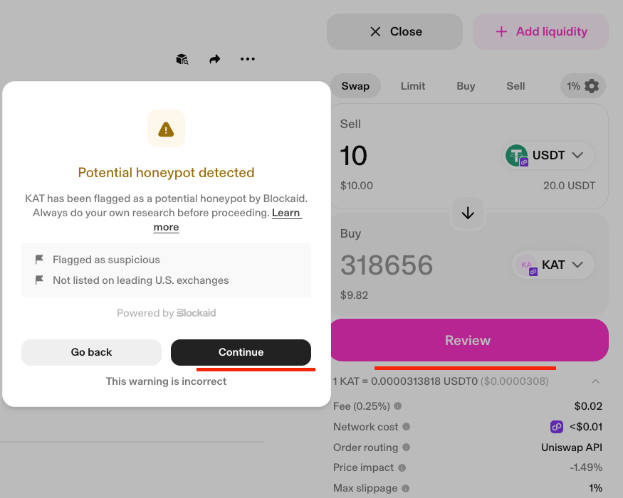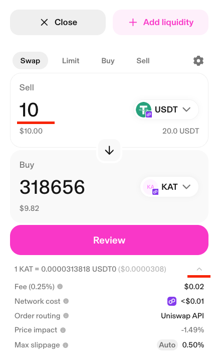 2. How to Buy or Sell KAT POL on Uniswap