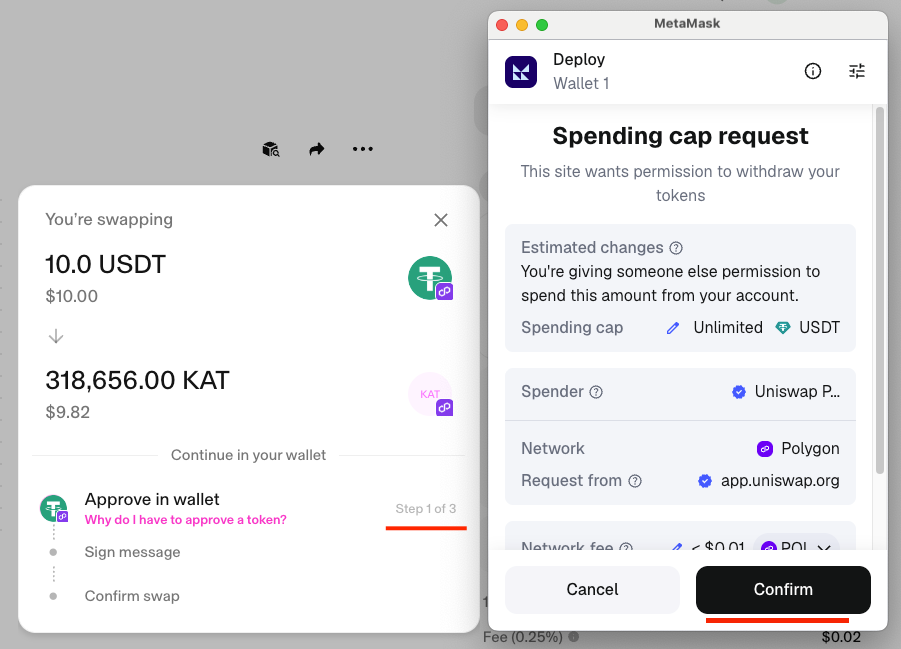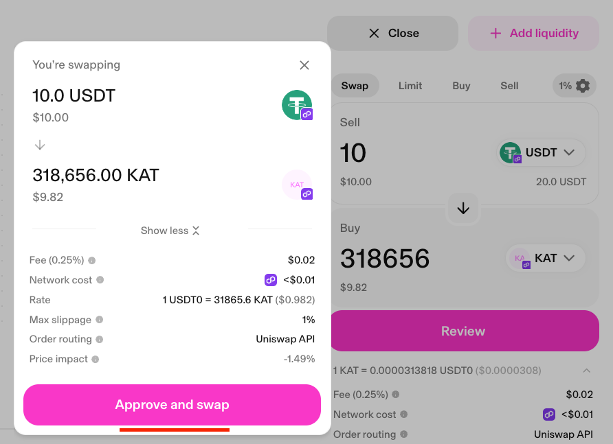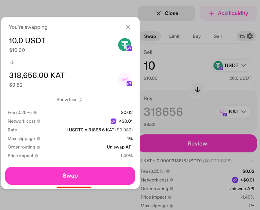 Uniswap Swap Link - KAT POL / USDT
