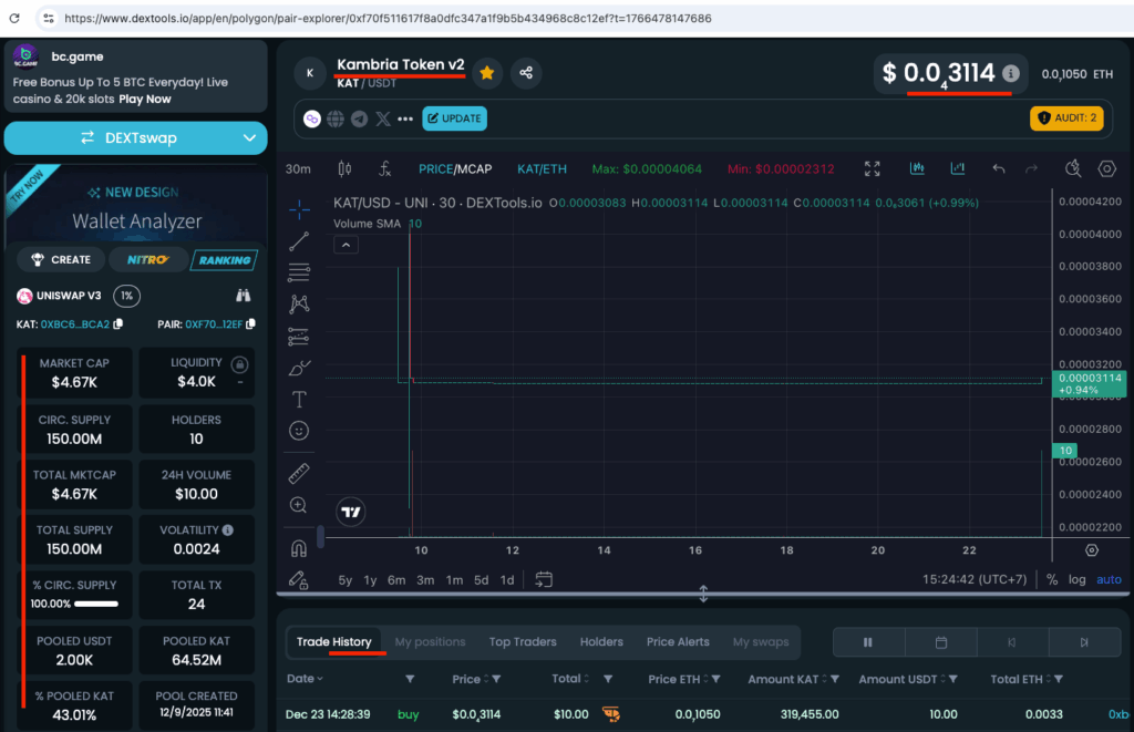 3. How to View the KAT POL / USDT Pool (via DEXTools)