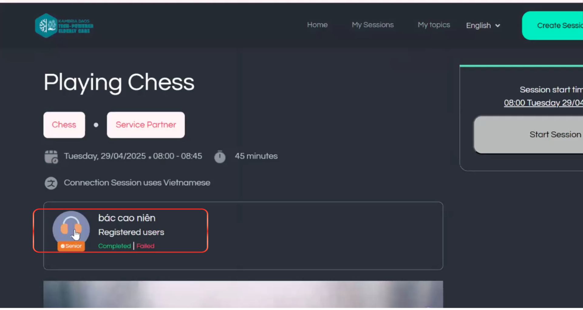 Inside the session page, click on the Senior’s avatar/logo to open their information panel.